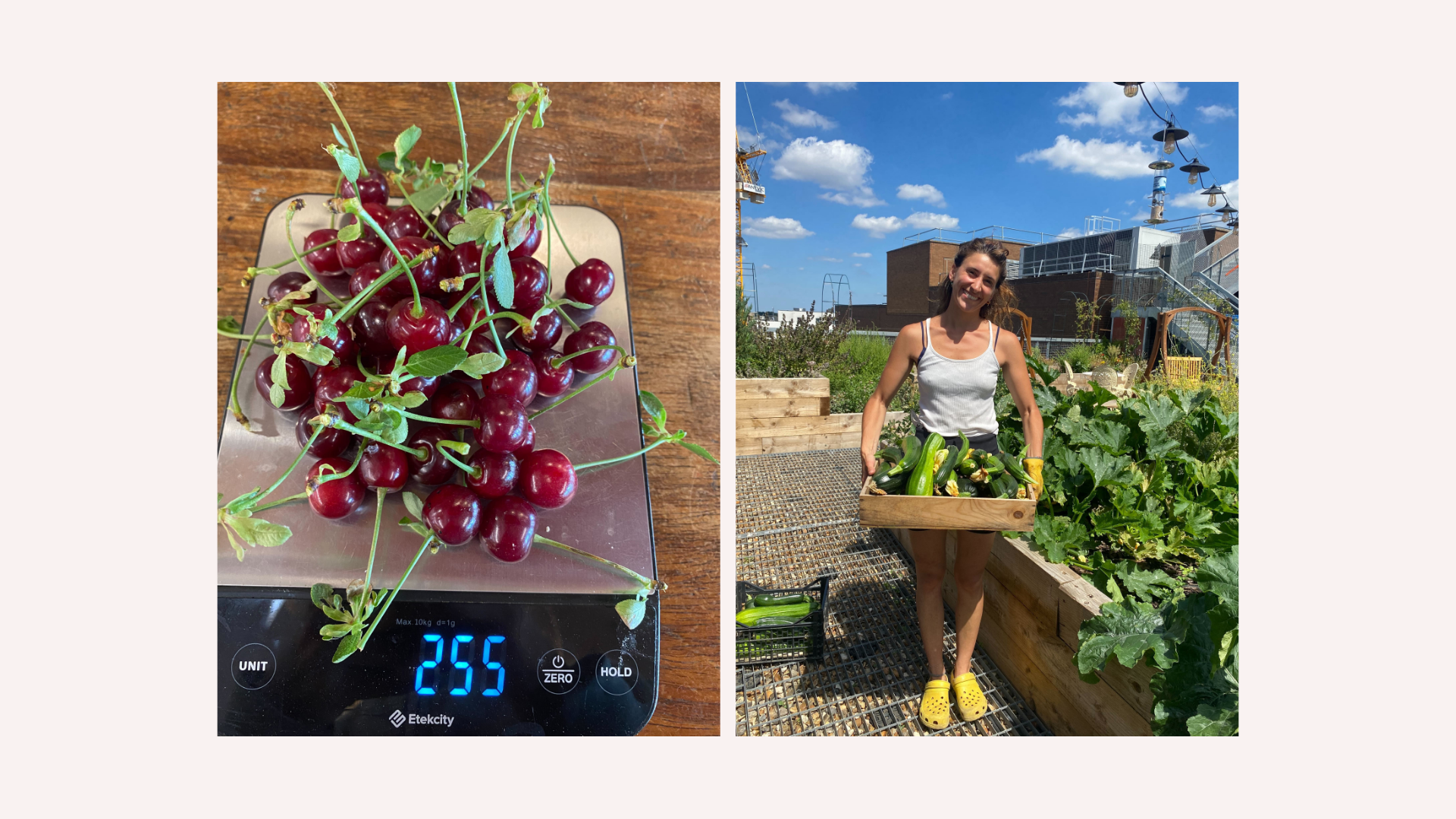 As we move through the height of summer, we are so excited to be rewarded with a full, blooming garden on our rooftop in Sutton! From courgettes, to grapes to cherries, we continue to see growth each day! Greta, our community gardener, harvested our first cherries on the roof this month, and she wrote a few words about it: